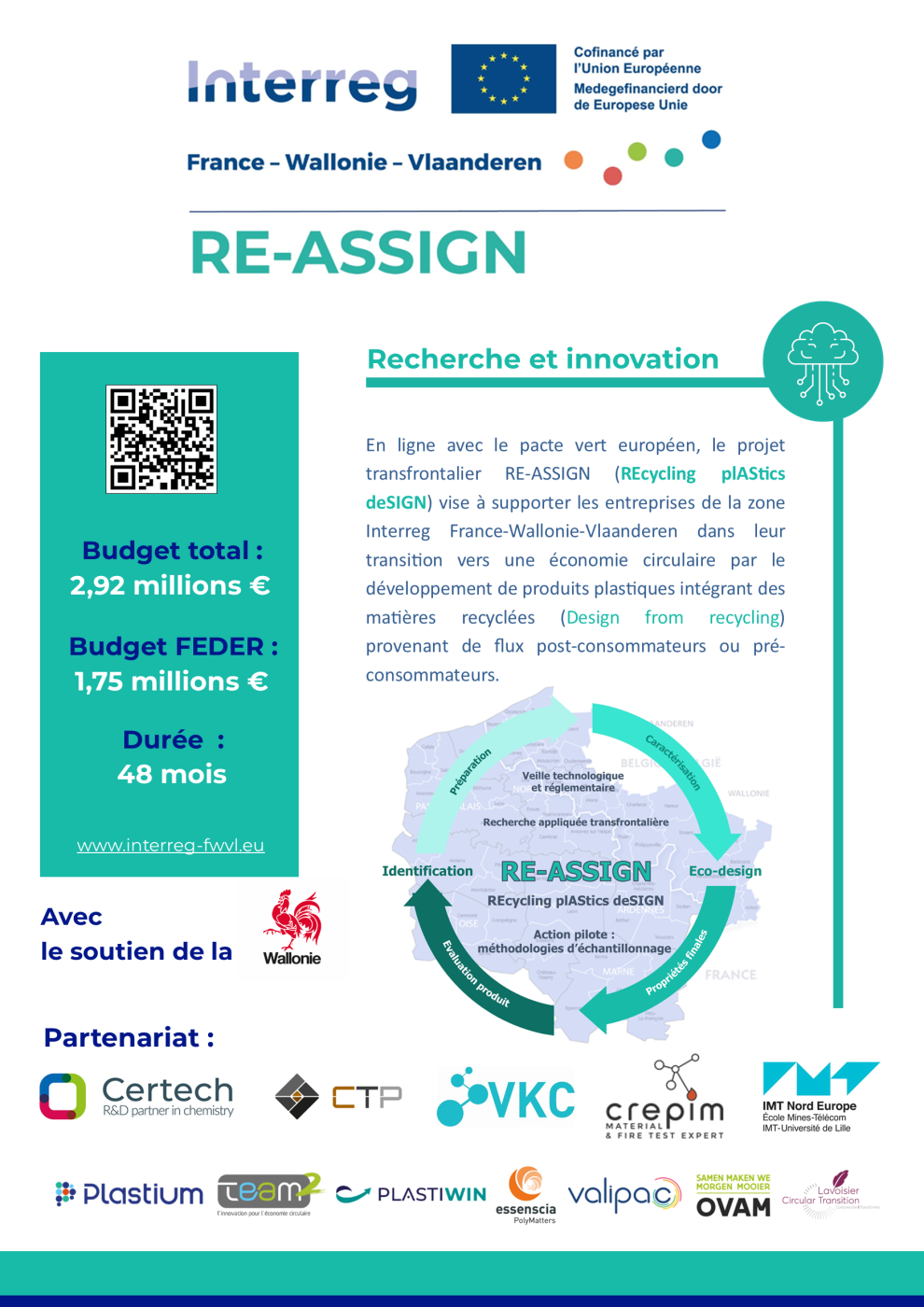 IMT Nord Europe est partenaire du projet Interreg RE-ASSIGN (REcycling plAStics deSIGN), en collaboration avec des universités et entreprises internationales, cofinancé par l’Union Européenne dans le cadre du projet Interreg France-Wallonie-Vlaanderen.